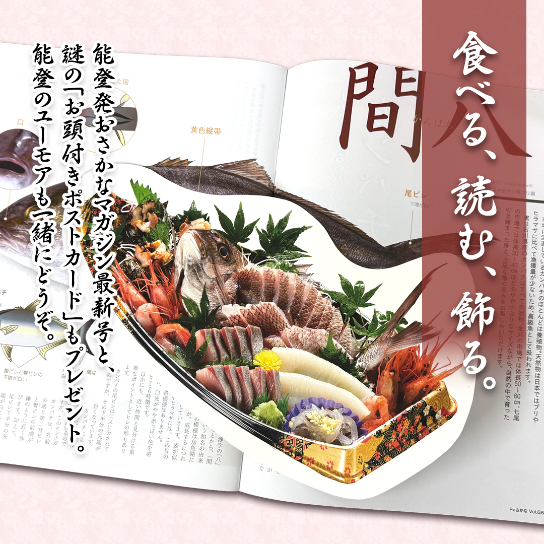 魚にも旬があり、四季折々に獲れる魚が変わります。旬は栄養価も高くなり脂がのって味も濃い。何が入るかはお楽しみ。能登の海の旬を、たっぷりお楽しみください。