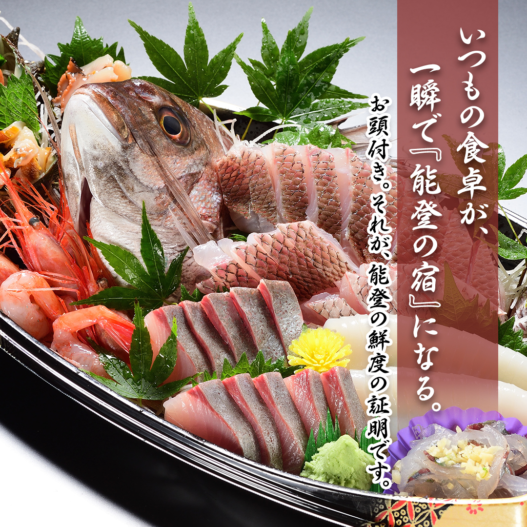 | お届け内容 | おさしみ盛り合わせ約7種類・お頭つき・醤油1本 | |